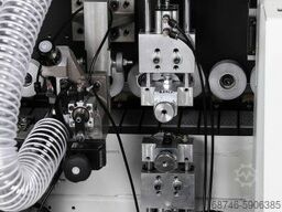 Coils up to 3 mm thick and strips up to 4 mm, this inexpensive machine comes with 1.2 kg glue tank, pre-milling, automatic gluing, edge cutting, end trimming, up-down milling, radial scraper and polishing function.